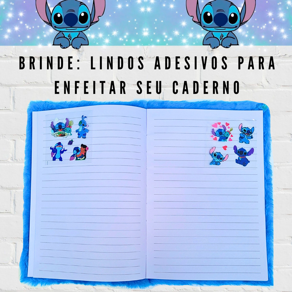 Caderno de Pelúcia Super Fofo Stitch Mais caneta fofa com 10 cores Stitch e um lindo chaveiro Stitch de alta qualidade. Presenteie aquela pessoa especial que ama esse carinha super fofo.